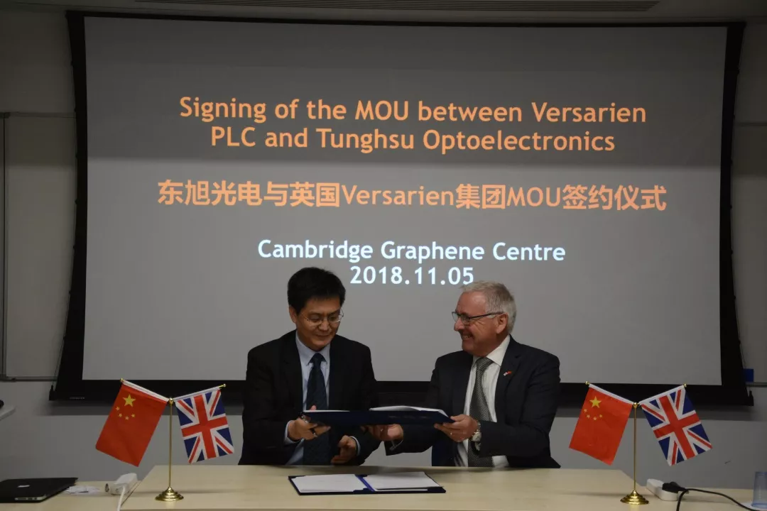 在此次英國訪問過程中,東旭光電還受英國石墨烯領(lǐng)先上市公司Versarien(Versarien plc,以下簡稱“VS”)邀請參觀了其在石墨烯產(chǎn)業(yè)化應用方面的成果,并簽署了合作諒解備忘錄。雙方未來將在高質(zhì)量石墨烯材料制備、光電顯示材料、新能源汽車、LED照明系統(tǒng)、石墨烯熱管理材料和柔性電池等主業(yè)相關(guān)領(lǐng)域加強合作。同時,雙方將互為對方在亞太和歐洲的業(yè)務支點,共享石墨烯產(chǎn)業(yè)化應用經(jīng)驗。