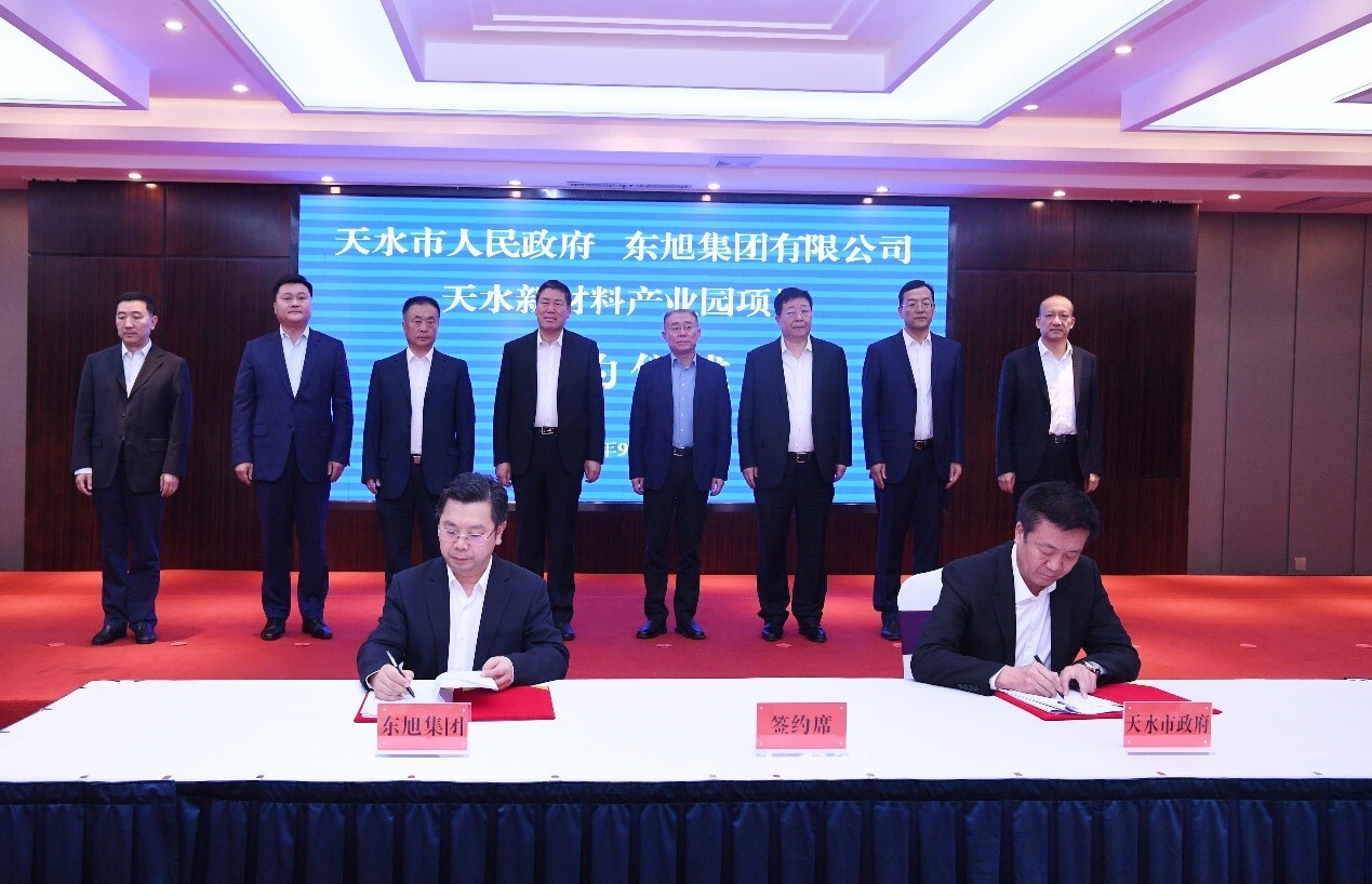 天水市委書記王銳,市委副書記、市長王軍,市人大常委會(huì)主任蔣曉強(qiáng),市委常委、副市長景丹,副市長張棟梁,市政協(xié)副主席王祥林等市領(lǐng)導(dǎo),東旭集團(tuán)董事長李兆廷、常務(wù)副總裁曲俊杰、執(zhí)行副總裁李泉年以及東旭集團(tuán)核心產(chǎn)業(yè)主要負(fù)責(zé)人等出席項(xiàng)目簽約儀式,雙方簽訂了《東旭集團(tuán)有限公司天水新材料產(chǎn)業(yè)園項(xiàng)目投資協(xié)議》。