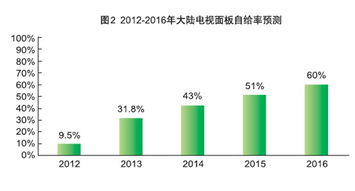 就大陸大尺寸TFT-LCD產(chǎn)能的發(fā)展進(jìn)行分析,隨著國內(nèi)高世代液晶面板線的相繼建成和投產(chǎn),到2016年所開出的大尺寸液晶面板產(chǎn)能可滿足大陸彩電品牌廠商所需TV面板60%的自給率。屆時(shí),大陸6代液晶面板線及以下產(chǎn)能將主要以中小尺寸液晶面板為主,應(yīng)用于智能手機(jī)、平板電腦等移動終端設(shè)備。而多條8.5高世代液晶面板線以生產(chǎn)大尺寸液晶面板為主,以供應(yīng)電視、顯示器等設(shè)備所需。